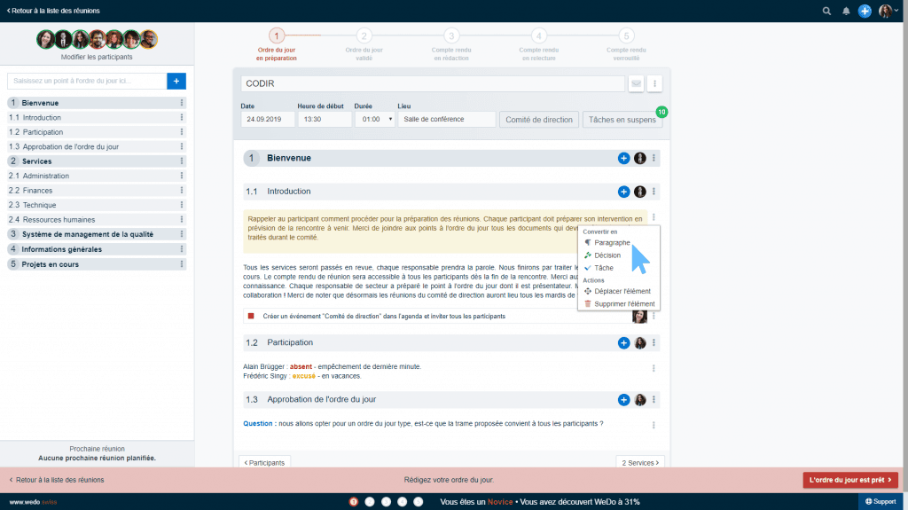 It is possible to order all the items of the meeting. Simply drag and drop an item to reorder it.