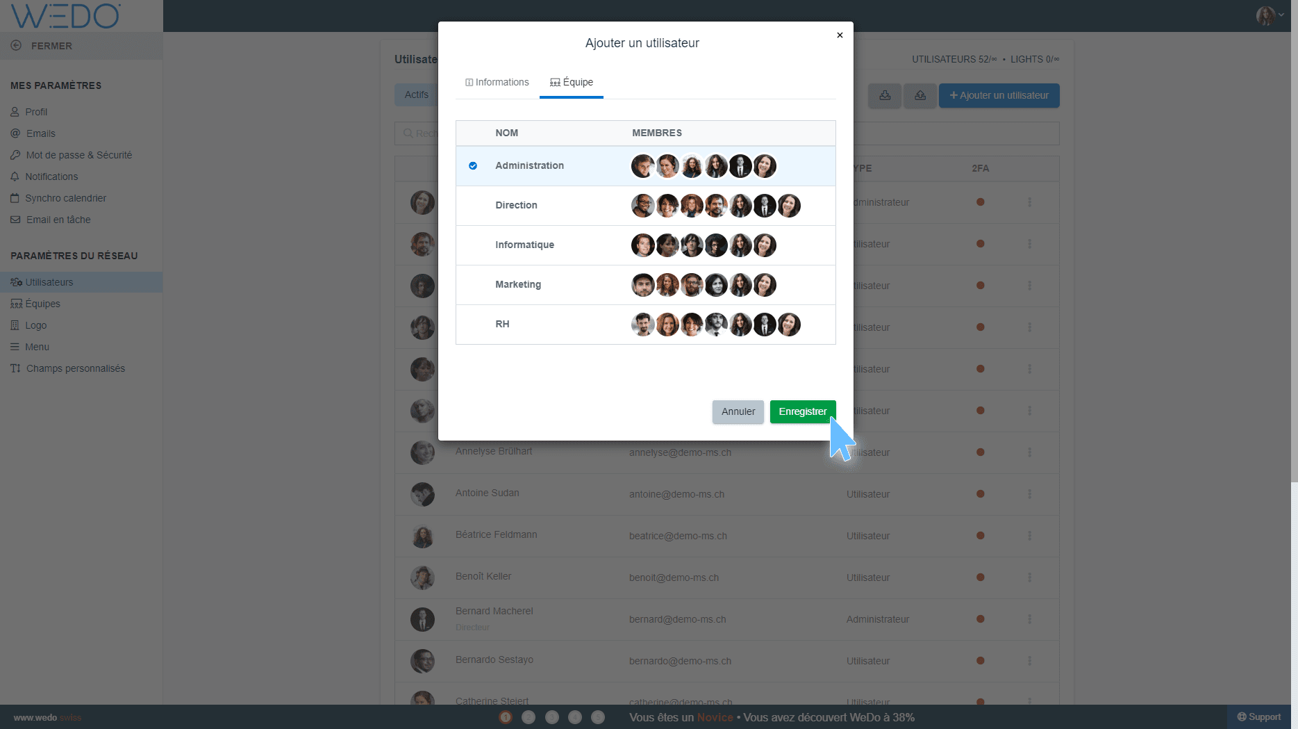 An improvement for user management: Administrators can now choose which teams users should be affiliated to when creating new accounts.