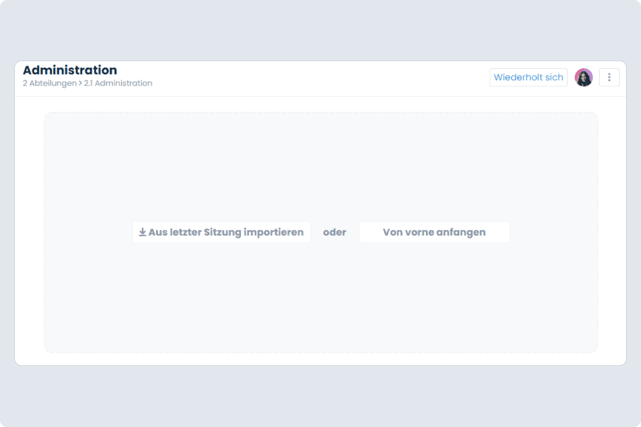 Sie können in der nächsten Sitzung bei jedem Thema entscheiden, ob Sie den Inhalt vom letzten Mal importieren möchten oder ob Sie mit einem leeren Blatt starten wollen.👆🏻